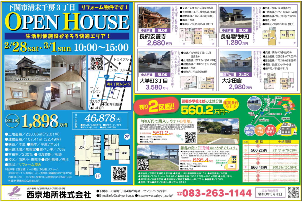 内外装リフォーム済&LDK25帖のゆとり空間!長府エリアでお探しの方におすすめ